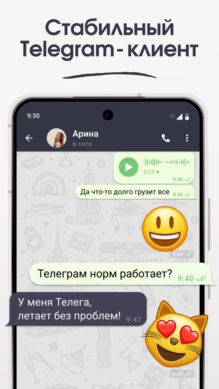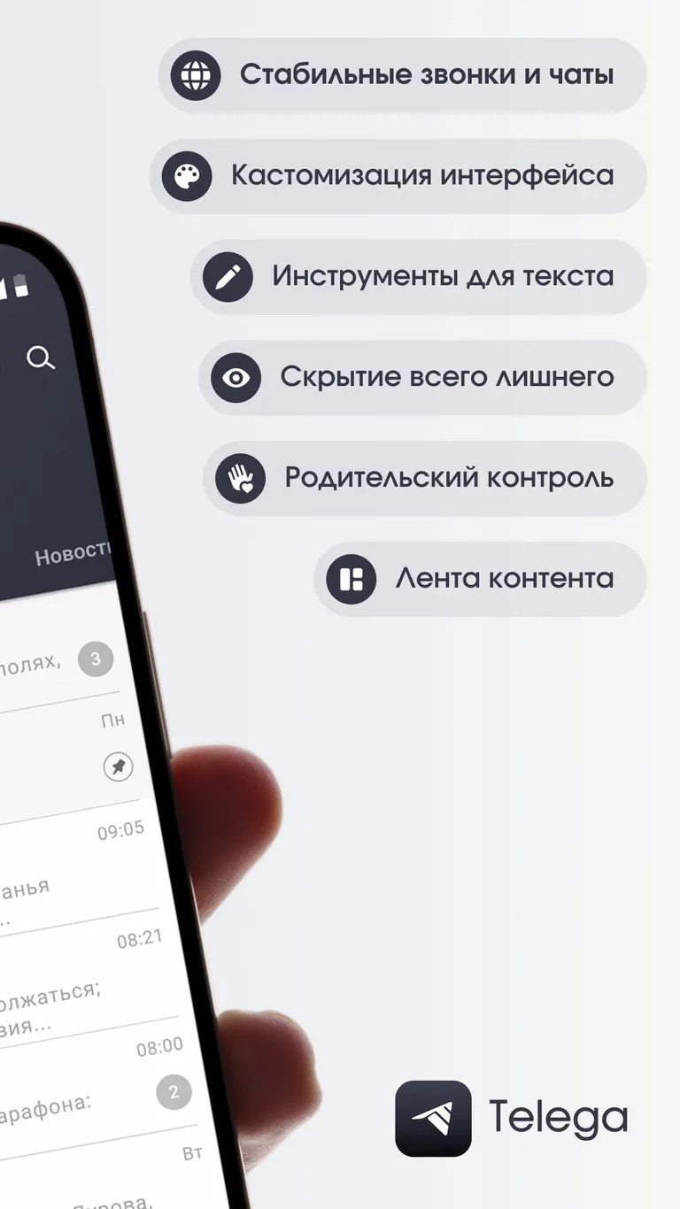 Телега — это надёжный клиент для Telegram, в котором удобно звонить, вести переписки и организовывать чаты для общения. Приложение сочетает функции мессенджера и звонков: доступны групповые чаты, голосовой чат, групповые видеозвонки, переписки и сообщения — всё в одном приложении. Телега остаётся удобным способом общения в Telegram, а также служит альтернативой мессенджерам Max, Imo и отличной заменой WhatsApp, Viber. Ведь с Телегой звонки и видеозвонки через интернет работают без специальных инструментов.